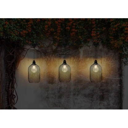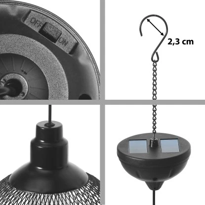 Die Amare LED-Solar-Hängeleuchte Schwarz vereint schönes Design und umweltfreundliche Technologie in einem. Der zeitlose Look dieser Hängelampe vermittelt im Gegensatz zu anderen Strahlern einen echten Hingucker. Somit ist die Hängelampe ideal für Ihre Chill-Area – egal ob Balkon, Lounge-Ecke, Terrasse, Loggia oder Wintergarten. Die Amare Solar-Hängeleuchte lädt sich tagsüber auf und speichert die Sonnenenergie im integrierten Akku. Somit ist Ihre Solar Laterne umweltfreundlich, betriebskostenfrei und bedienungsfreundlich.