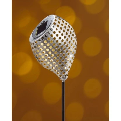 Für ein wunderschönes Ambiente rund um Haus und Garten – das Amare LED-Solardekostecker 2er-Set Kelch schräg Metallfarben. Diese Amare Gartenstecker sind eine tolle Ergänzung für den Garten oder Eingangsbereich, die mit sanftem, warmweißem Lichtschein überzeugt. Ausgestattet mit einem Erdspieß kann die LED-Solarleuchte einzeln oder in Reihe entlang von Beeten, Wegen und Rasenflächen platziert werden, ohne dass man sich aufwendig auf die Suche nach einer Stromquelle machen muss. Bei voll aufgeladenem Akku beträgt die Leuchtdauer bis zu 8 Stunden und ein Dämmerungssensor ist integriert, so dass sich die Gartenleuchte nach Einbruch der Dunkelheit automatisch einschaltet. Der Akku ist im Lieferumfang enthalten (Ni-MH 1,2V 400mAh). Die Marke Amare steht für hochwertige Qualität. Mit Sitz in Deutschland steht die Zufriedenheit der Kunden und die Einhaltung von Produktanforderungen und Qualitätsstandards an oberster Stelle.