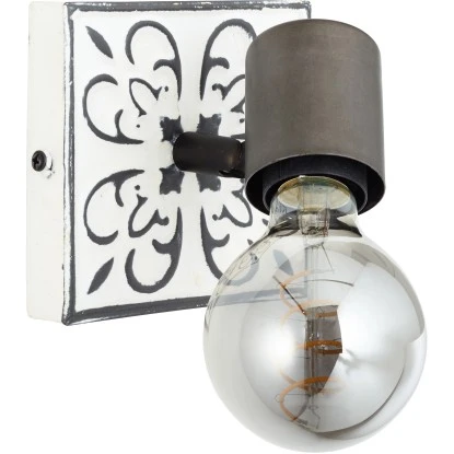 Die Wandlampe Vagos vereint Historie mit Moderne. Das einprägsame Muster ist inspiriert von portugiesischen Azulejos und verleiht der Leuchte einen antiken Touch. Kombiniert mit modernen Elementen, wird sie auf jeden Fall dem aktuellen Trend gerecht.