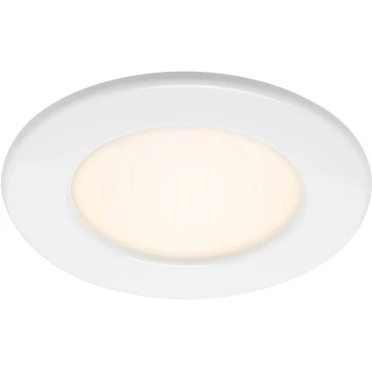 Die weiße Brilo LED-Einbauleuchte der Serie Thin hat eine fest verbaute LED-Platine mit 6 Watt und einer Lichtleistung von 450 Lumen. Die Leuchte hat eine warmweiße Lichtfarbe und ist mit der Schutzart IP44 vor Spritzwasser geschützt und somit auch für Badezimmer geeignet. Das Einbaumaß hat einen Durchmesser von 100 mm und die Einbauhöhe beträgt 30 mm.