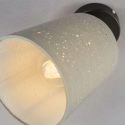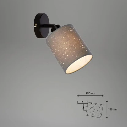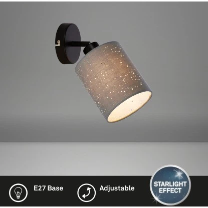 Die graue Brilo Spotleuchte mit schwarzem Sockel aus der Serie Stofa bringt ein edles und gleichzeitig besonderes Ambiente in Ihren Wohnbereich. Die Wandleuchte setzt mit ihrem Vintage-Look und Sternendekor stilvolle Akzente in Ihrem Wohnraum. Durch den dreh- und schwenkbaren Spot ist das Licht individuell steuerbar. Die maximale Wattzahl für den Spot beträgt 25 Watt (E27-Fassung). Das Leuchtmittel ist im Lieferumfang nicht enthalten. Des Weiteren besitzt der Wandspot die Schutzart IP20 und ist ausschließlich für den Einsatz im Inneren vorgesehen.