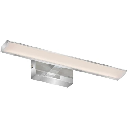 Die moderne 1-flammige LED-Wandleuchte überzeugt in einem schönen Chrom. Die Wandleuchte kann wunderbar über oder neben dem Spiegel angebracht werden und passt zu allerlei Stilen, denn das Design ist sehr modern und stellt einen echten Hingucker dar. Die längliche Form der Leuchte bewirkt eine Ausleuchtung, die besonders flächig gelten kann, wodurch sich insbesondere ein Spiegel gut ausleuchten lässt. Das helle Licht bietet einen optimalen Lichtspender zum schminken oder stylen und schafft zusätzlich eine gemütliche Atmosphäre. Dank IP23 ist der Einsatz in Feuchträumen möglich, da die Leuchte spritzwassergeschützt ist. Die energiesparenden LED-Leuchtmittel mit je 5 Watt und 500 Lumen Lichtleistung sind im Lieferumfang enthalten. Die integrierten LEDs erweisen sich mit ihrer hohen Lichtausbeute als sehr energieeffizient und sie leuchten Warmweiß (3.000 K). Die Lampe hat eine durchschnittliche Betriebsdauer von 20.000 Stunden. Dies entspricht einer Lebensdauer von ca. 15 Jahren bei einer Nutzung von 3,5 – 4 Stunden täglich. Die Montage der Lampe ist einfach. Montagematerial und eine mehrsprachige Aufbauanleitung liegen der Leuchte bei.