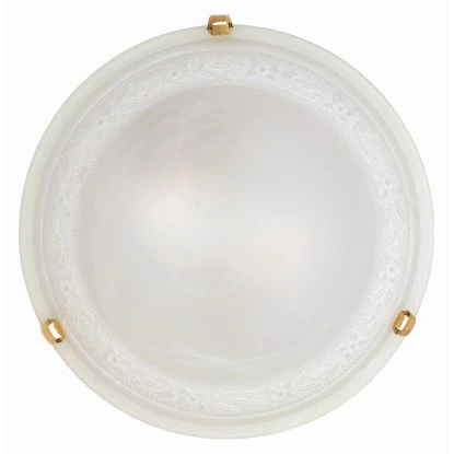 Diese Deckenleuchte ist eine praktische Lichtquelle in rustikalem Design. Der Schirm aus alabasterfarbenem Glas wurde am Rand mit floralem Muster dezent dekoriert und ist mit Krallen aus Messing umfasst. Sie können die Deckenleuchte mit einer Allgebrauchsglühlampe (Fassung E27) betreiben.
