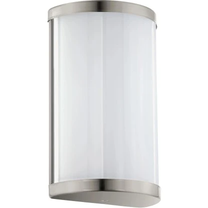 Die Wandleuchte Cupella ist aus nickel-mattem Stahl und weißem Kunststoff gefertigt. Sie verfügt über eine Schutzisolierung und ist mit zwei LED-Leuchtmitteln, welche warmweißes Licht spenden, bestückt.