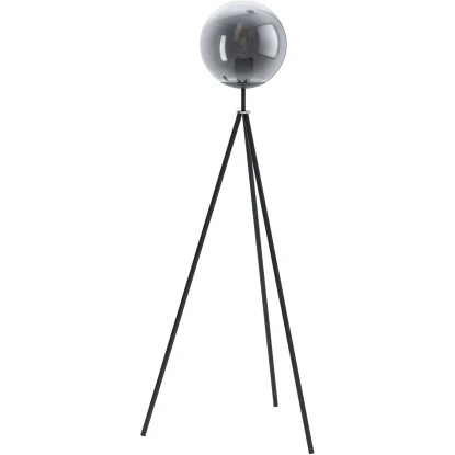 Die Eglo Stehleuchte Isorella ist aus schwarz-verchromtem Stahl sowie einem transparentem Rauchglas gefertigt.
