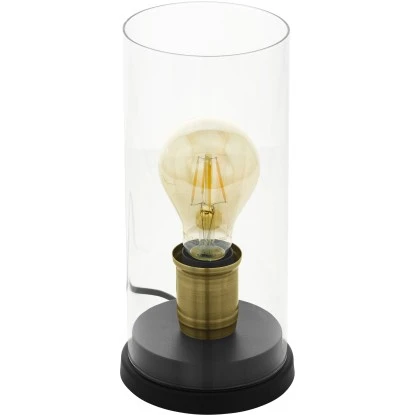 Diese Eglo Tischleuchte der Serie Smyrton ist aus brüniertem Stahl gefertigt und hat einen Schirm aus Glas. Sie wird mittels Kabelschalter bedient.