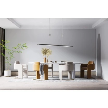 Durch die moderne Oberfläche in aluminium-nickelfarben matt findet dieses Modell automatisch einen besonderen Platz in jedem Wohn- Essbereich. Mit einer Länge von 85 cm und einer Breite von 8 cm leuchtet sie jeden Tisch optimal aus und lässt durch die Höhenverstellbarkeit von 100-160 cm auch in diesem Bereich keine Wünsche offen.