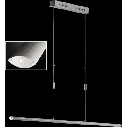 Durch die moderne Oberfläche in aluminium-nickelfarben matt findet dieses Modell automatisch einen besonderen Platz in jedem Wohn- Essbereich. Mit einer Länge von 140 cm und einer Breite von 8 cm leuchtet sie jeden Tisch optimal aus und lässt durch die Höhenverstellbarkeit von 100-160 cm auch in diesem Bereich keine Wünsche offen.
