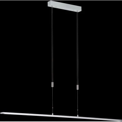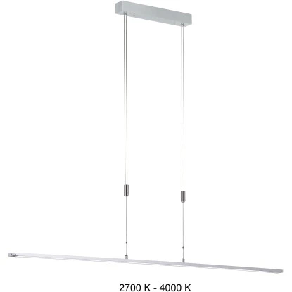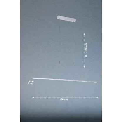 Durch die moderne Oberfläche in aluminiumfarben-nickelfarben matt findet dieses Modell automatisch einen besonderen Platz in jedem Wohn- Essbereich. Mit einer Länge von 160 cm und einer Breite von 6 cm leuchtet sie jeden Tisch optimal aus und lässt durch die Höhenverstellbarkeit von 90-150 cm auch in diesem Bereich keine Wünsche offen.