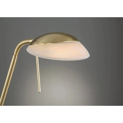 Die messingfarben matte Oberfläche mit einem Alabasterfarbenen Glas wirkt modern. Mit einer Ausladung von 40 cm und einer Höhe von 60 cm ist dieser Artikel für Flure oder Wohn- und Essbereichen bestens geeignet. Schönes Licht ist garantiert. Durch einen Sensordimmer direkt an der Leuchte ist stufenloses Dimmen für die Gemütlichkeit gegeben.