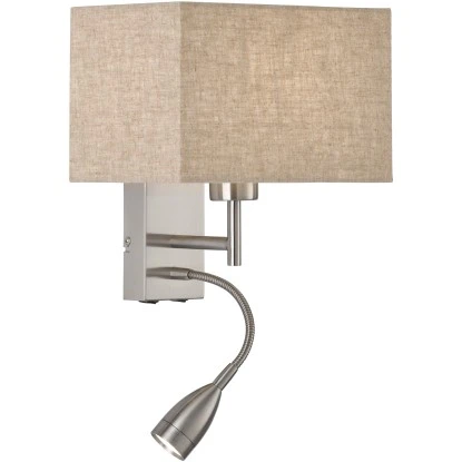 Zum Lieferumfang gehört der Schalter, der bereits an der Leuchte angebracht ist und eine bequeme Bedienung ermöglicht. Die Wandlampe ist aus der Materialkombination Metall und Leinen hergestellt. Der sandfarbene Lampenschirm bildet einen tollen Kontrast zur Halterung in Nickel matt. Die Leuchte fügt sich in diesem Design optimal in jede Einrichtung und ist nicht nur eine Lichtquelle, sondern auch ein schönes Einrichtungsdetail. Die Wandleuchte Dream ist nach oben und unten offen. Dadurch scheint das Licht in beide Richtungen aus dem Schirm und es entstehen schöne Lichteffekte an der Wand.
