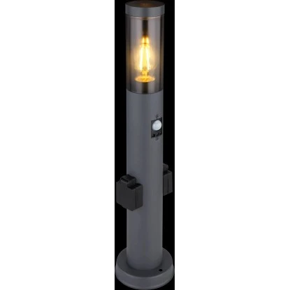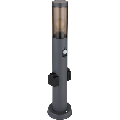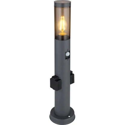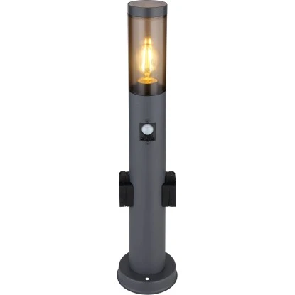 Diese elegante Globo Außenleuchte Boston Edelstahl Anthrazit mit 2 Steckdosen & Bewegungssensor zeichnet sich durch ihr stilvolles Design und die tolle Verarbeitung aus. Die formschöne Außenlampe ist aufgrund ihrer Schutzart IP44 bestens für den Außenbereich geeignet. Dieses Modell ist aus Edelstahl und Kunststoff in Anthrazit gefertigt und hat eine Gesamtgröße von 60 cm. Die Lampe ist mit einer E27 Fassung ausgestattet und ermöglicht Ihnen ein Leuchtmittel (max. 15 W) Ihrer Wahl zu nutzen. Aufgrund ihrer Stromersparnis und Langlebigkeit empfehlen wir LED-Lampen. Ein zusätzlicher Pluspunkt sind die zwei Steckdosen und der integrierte Bewegungsmelder (90 °) mit einer Reichweite von 2 bis zu 8 Meter. Mit weiteren Sockellampen und Wandlampen der gleichen Produktserie kann man das Bild komplettieren.