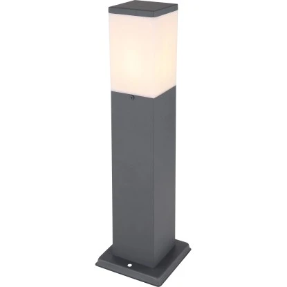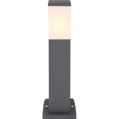 Die Sockelleuchte Herri von Globo mit einer Abmessung von 12,7 cm x 12,7 cm überzeugt durch Ihr stilvolles Design aus anthrazitfarbenem Edelstahl. Die 45 cm große Außenleuchte besteht aus einem Edelstahlquader, der mit opalenem Kunststoff versehen ist. Dier bedeckt die E27-Fassung der Leuchte, welche Sie mit einem passenden LED-Leuchtmittel bestücken können. Dadurch haben Sie die Möglichkeit, Lichtfarbe und Helligkeit nach Ihren Vorstellungen zu bestimmen. Mithilfe des Sockels kann sie bequem auf ebenen Flächen fixiert werden. Mit Dier Leuchte können Sie Ihre Außenbereiche stilvoll ergänzen.