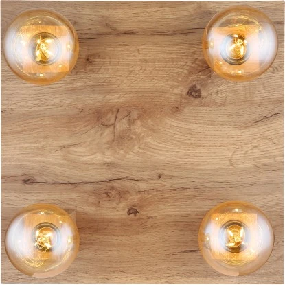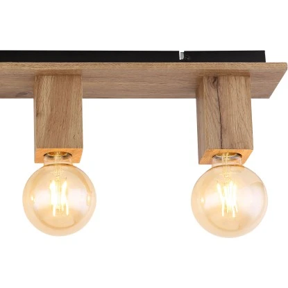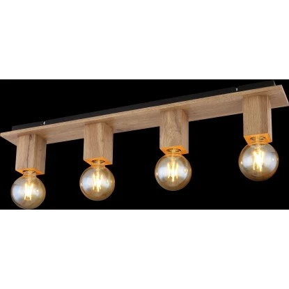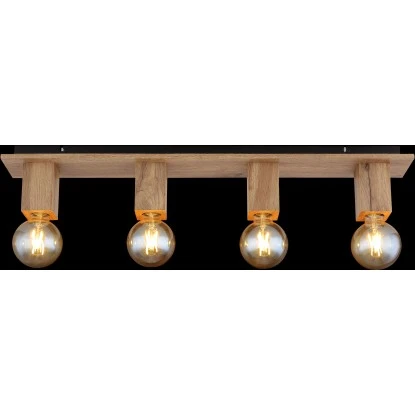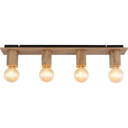 Diese tolle Deckenleuchte aus der Serie Erna überzeugt durch schlichtes Design. Aus einer schmalen rechteckigen Deckenbefestigung (80×10 cm) ragen vier Holzblöcke mit jeweils einer E27 Fassungen. Diese ermöglichen Ihnen die freie Auswahl, bis zu einer maximalen Leistung von 60 Watt, selbst über Lichtfarbe und Helligkeit zu bestimmen. Mit weiteren Modellen dieser Serie können Sie Ihren Wohnbereich perfekt ergänzen.