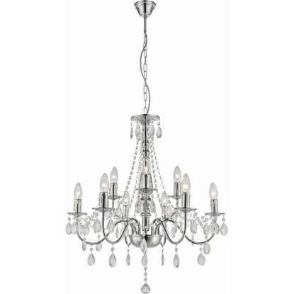 Dieser opulente Lüster mit dem Namen William besticht mit seiner eleganten Optik. Durch die an den neun geschwungenen Chromarmen herunterhängenden klaren Acrylkristalle wird das Gesamtbild dieser Hängelampe mit einem Durchmesser von 63cm, noch zusätzlich aufgewertet. Diese Lampe verfügt über neun E14 Fassungen welche mit beliebigen (max.40W) Leuchtmitteln bestückt werden können. Aufgrund ihrer Stromersparnis und Langlebigkeit empfehlen wir LED-Lampen.