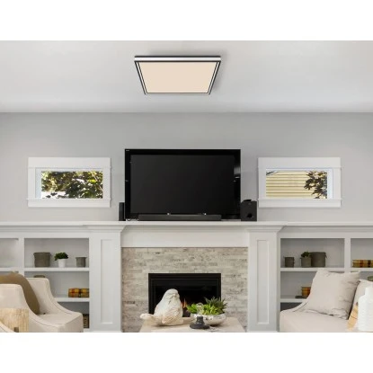 Im Rahmen befindet sich ein LED-Panel welches ein 2700 Kelvin warmweißes bis hin zu 6500 Kelvin kaltweißes Licht ausstrahlt und somit für eine angenehme Stimmung sorgt. Mit Hilfe der inkludierten Fernbedienung können Sie die Leuchte dimmen und fixieren lassen oder auch in den Nachtmodus wechseln. Dank der Memory Funktion bleiben die letzten Einstellungen erhalten. Setzen Sie Akzente.