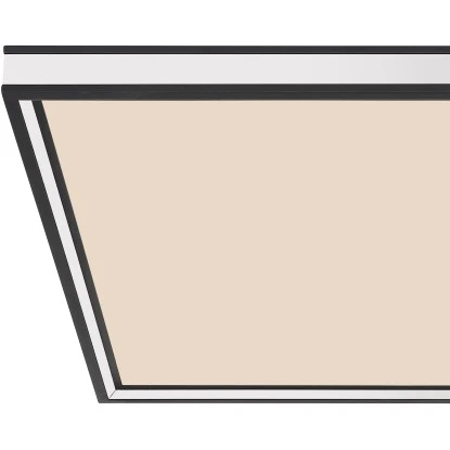 Diese moderne Deckenleuchte überzeugt durch ihr schönes Design. Sie besteht aus einem 45×45 cm großen Rahmen in der Farbe Schwarz mit Spiegelungen in Chrom.