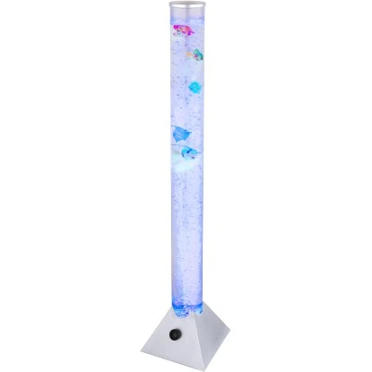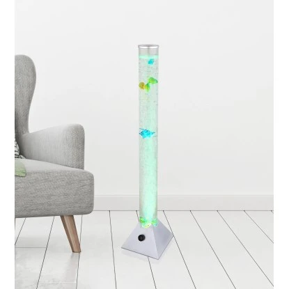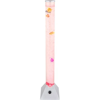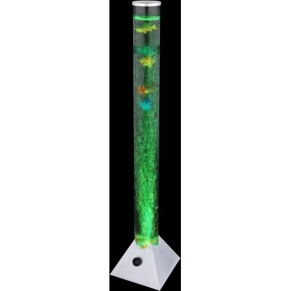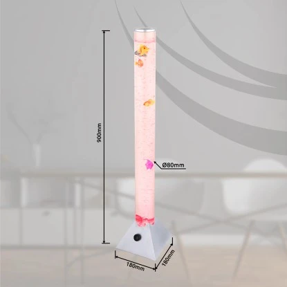 Diese tolle Stehleuchte der Serie Mendoza begeistert durch Ihr einzigartiges Design. Aus einem pyramidenförmigen Standfuß ragt ein zylinderförmiges Gefäß mit einer Höhe von 61 cm inklusive Dekorationsfische welche durch aufsteigende Luftblasen sich auf und ab bewegen. Durch ein RGB LED Leuchtmittel im Standfuß scheint das Wasser in unterschiedlichen Farben und sorgt für einen tollen Effekt.