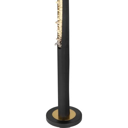 Mit dieser 151 cm große Stehlampe aus der Felicitas-Serie von Globo mit einem Durchmesser von 23 cm erweitern Sie Ihren Innenbereich um eine elegante Lichtquelle. Sie besteht aus einem schwarzen Holzstab, der an einem schwarz-matten Metallsockel fixiert ist und über Messingringe verfügt. An einer Seite ist sie mit wunderschönen Acrylkristallen versehen, welche die inkludierten LED-Leuchtmittel bedecken. Die leisten 980 Lumen starkes Licht bei einer angenehmen warmweißen Lichtfarbe von 3000 Kelvin. Durch weitere Artikel der gleichen Serie können Sie das Gesamtbild in Ihren Innenräumen komplettieren.
