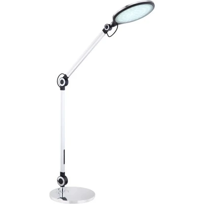 „Die formschöne Globo LED Tischleuchte Urias Silber überzeugt durch ihre neutrale Materialkombination und schlichten Design. Durch das inkludierte 10 Watt LED Leuchtmittel leistet diese Lampe bis zu 660 Lumen starkes Licht. Die Gelenke sind individuell verstellbar und somit lässt sich der Leuchtenkopf wunderbar fokussieren. Mit der Touch-Funktion und dem Touch-Dimmer wird das Ein-/ Ausschalten dieser LED Lampe zu einem besonderen Leuchterlebnis. Die Lichtfarbe dieser 103,5 cm hohen Tischleuchte lässt sich von warmweißen (3000 Kelvin) bis hin zu kaltweißen (6000 Kelvin) verstellen und fixieren. Die Tischlampe erfreut mit Sicherheit jeden Besitzer mit ihrem einmaligen Charme.“