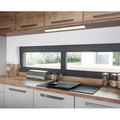 Diese schlichte Unterbauleuchte überzeugt durch schönes Design und Funktion. Die 50 cm lange und 30 cm breite Leiste scheint ein 3000 Kelvin warmweißes Licht und sorgt für die perfekte Beleuchtung Ihrer Regale oder Tische. Durch einen ON/OFF Kippschalter am inkludierten Adapter können Sie die Leuchte ganz einfach bedienen. Das Design aus weißen und opalen Kunststoff erstrahlt Ihre Räumlichkeiten in einer wunderschönen Optik. Setzen Sie Akzente.