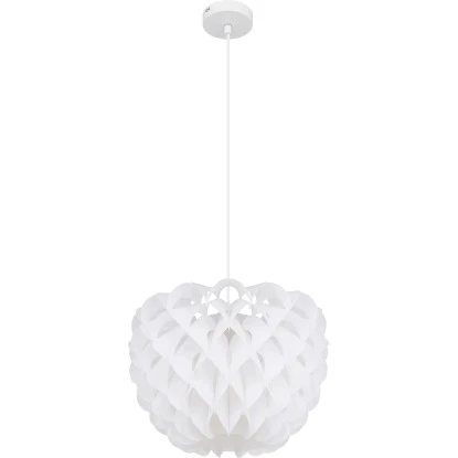Diese dekorative Pendelleuchte begeistert durch ihr schönes Design. Die Leuchte besteht aus Dekorbögen welche man selbst zu einem Schirm Ø37 cm zusammenbaut um den Spaß am basteln aufrecht zu erhalten. Eine E27 Fassung hängt an einem weißen Kabel 1,2m von der Decke und lässt Ihnen die Möglichkeit, über Ihr Leuchtmittel bis zu einer maximalen Leistung von 25 Watt, selbst zu bestimmen.
