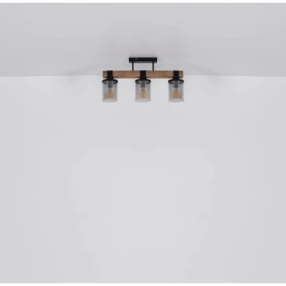 Diese schöne Wandleuchte begeistert durch tolles Design aus Holz und schwarzen Metall. Aus einer quadratischen schwarz matten Wandbefestigung ragt ein 17 cm langer Holzstamm, an dem sich eine E27 Fassung mit einem rauchfarbenen zylinderförmigen Glasschirm überdeckt wird. Die E27 Fassung ermöglicht Ihnen bis zu einer maximalen Leistung von 60 Watt, selbst über Lichtfarbe und Helligkeit zu bestimmen.