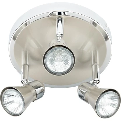 Der 3er Halogen-Spot aus der Serie Lamezia hat einen chromfarbenen Sockel der teilsatiniert ist. In seinem modernen Design und mit den hochwertigen Nickelapplikation ist er ein Highlight in Ihren vier Wänden. Der Strahler verfügt über drei Halogenspots, die individuell ausgerichtet werden können – so leuchten Sie Ihr Zuhause optimal aus. Die Base des Strahlers hat einen Ø von ca. 19 cm.