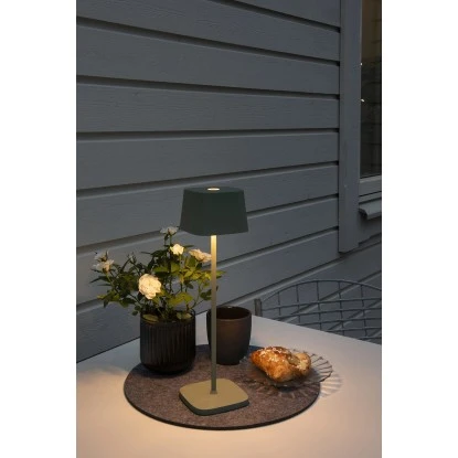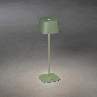 Die grüne USB-Tischleuchte Capri von Konstsmide hat eine Größe von 36 cm x 10 cm x 10 cm und verfügt über einen 4400 mA leistungsstarken Lithium-Ionen-Akku. Sie verfügt über IP 54 Strahlwasserschutz und ist aus hochwertigem Aluminium gefertigt. Damit trotzen sie dauerhaft Wind und Wetter.