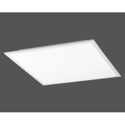 Die Deckenleuchte besticht durch ihr schlichtes und zeitloses Design. Das aus Stahl gefertigte Paneel in der Farbe Weiß hat eine Länge und Breite von 62 cm sowie eine Abhängung von 5,6 cm. Es wird inklusive einem festverbauten 35 Watt LED-Leuchtmittel geliefert. Das Leuchtmittel strahlt rund 2870 Lumen aus und Sie haben die Möglichkeit, die Leuchte in ihrer Lichtfarbe von Warmweiß (2.700 Kelvin) bis Tageslichtweiß (5.000 Kelvin) sowie die Lichtstärke zu verändern. Diese Regulierung erfolgt über die Fernbedienung, die bei dieser Leuchte im Lieferumfang enthalten ist. Durch das weiße Kunststoffglas gibt Sie ein blendfreies Licht ab.