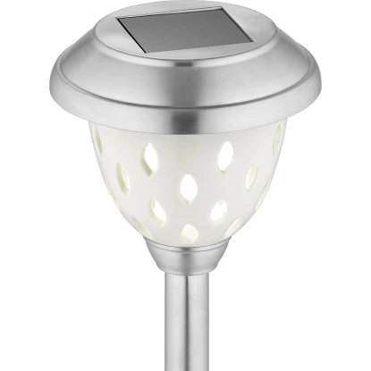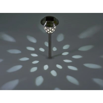 Mit dem LED-Solarspieß Tropfen Pirenta in Edelstahloptik holen Sie sich einen dekorativen und ausgefallenen Blickfang in Ihren Garten. Durch das Muster im Keramikkopf wirft der Solarspieß bei Dunkelheit einen einzigartigen Lichteffekt auf seine untere Umgebung. Tagsüber sammeln und speichern die Solarzellen die Sonnenenergie, welches sie ab der Dämmerung wieder abgeben und für schöne Lichtakzente sorgen – stromunabhängig und ohne Kabel.
