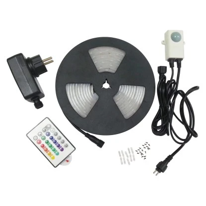 Mit dem LED-Flexband Flex LED Colour können Sie Ihren Außenbereich besonders effektvoll in Szene setzen. Das 5 m lange Flexband ist mit 30 LEDs (4,9 W) pro Meter ausgestattet. Die Bedienung ist dank mitgelieferter Fernbedienung sehr einfach. Sie können zwischen vielfältigen Leuchtfunktionen, wie zum Beispiel 16 Farben, Farbwechsel oder 4 verschiedenen Licht-Effekten wählen. Zudem zeichnet sich das LED-Flexband durch eine besonders lange Lebensdauer von 30.000 h aus und ist durch die Verwendung qualitativ hochwertiger Materialien weitestgehend witterungsunabhängig.
