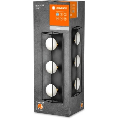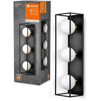 Die 3-flammige Ledvance Bad-Wandleuchte Decor Square ist im modernen Design in den Trendfarben Schwarz und Weiß aus Metall und Glas gefertigt. Sie ist mit drei G9 Fassungen ausgestattet und kann mit Leuchtmitteln Ihrer Wahl von jeweils maximal 28 W bestückt werden. Dank der Schutzart IP44 eignet sich die Leuchte optimal für den Einsatz im Badezimmer.