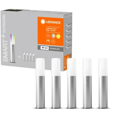 Die Ledvance LED-Außenleuchte Smart+ Garden Pole 5-flammig besitzt dekorative Leuchtstäbe für die Außenanwendung mit WiFi-Technologie. Sie sind steuerbar über die Ledvance Smart+ WiFi App (mit mindestens Android 4.4 oder iOS 10.0), über Google Assistant oder Amazon Alexa. Die Außenleuchten lassen sich über RGB-Farbsteuerung steuern. Dabei sind ca. 16 Mio. Farbmöglichkeiten einstellbar. Sie sind dimmbar und die Farbtemperatur beträgt 3.000 K (Warm White). Dank der Schutzart IP65 (Lichtpfahl) und der Schutzklasse IP44 (Netzteil) ist die Lampe für die Allgemeinbeleuchtung von Gärten, Terrassen und Balkonen geeignet. Eine Erweiterung ist auf maximal 8 Poles möglich.