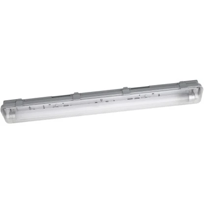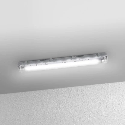 Die Ledvance LED-Feuchtraumleuchte Submarine ist im Innenbereich einsetzbar und eignet sich als Keller-, Garagen- oder Werkstattleuchte. Sie bietet optimalen elektrischen Schutz dank zweier Sicherungselemente und ist quecksilberfrei sowie RoHS-konform. Ihr Energieersparnis gegenüber T8-Leuchtstofflampen mit KVG (Konventionellem Vorschaltgerät) beträgt bis zu 65 %. Zudem überzeugt sie durch ihre lange Lebensdauer sowie eine gute und gleichmäßige Ausleuchtung. Der Farbwiedergabeindex Ra beträgt >= 80 und ihre IP Schutzart: IP65, somit ist die Leuchte staubdicht und geschützt gegen Strahlwasser. Des Weiteren besitzt sie eine seitliche PG-Kabelverschraubung und ein robustes Gehäuse aus Polycarbonat, welches feuer- und entzündungsbeständig ist (gemäß EN 60598-1). Der Lampenwechsel ist einfach zu handhaben.