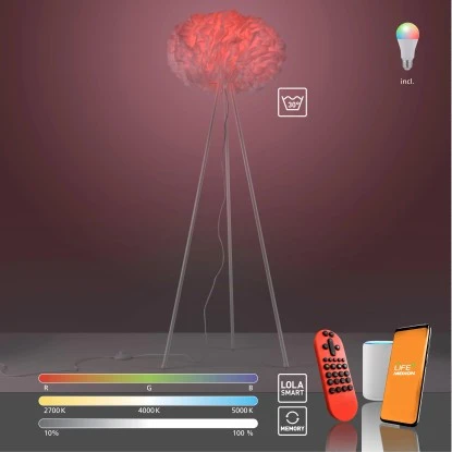 Wenn Sie auf der Suche nach einer extravaganten Leuchte sind, dann ist die smarte LED-Stehleuchte LOLAsmart-Naomi von Leuchten Direkt genau das Richtige! Die funktionelle Standleuchte mit dem dekorativem Stoffschirm wird mit der LOLA-Infrarotfernbedienung geliefert, welche sofort einsatzbereit ist. So können Sie die Farbtemperatur des Lichts von warmweiß (2.700 Kelvin) bis tageslichtweiß (5.000 Kelvin) individuell steuern und die Lichtfarben eines Tagesablaufs simulieren.