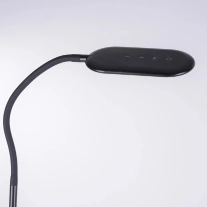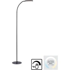 Die schwarze Stehleuchte Kelly eignet sich ausgezeichnet als Leselampe im Wohn- oder Schlafbereich. Der flexible Leuchtenarm lässt sich beliebig justieren. Das zeitlose und schlichte Design der Stehleuchte lässt sich mit jedem Einrichtungsstil kombinieren. Durch das integrierte CCT-Lichtmanagement können Sie die Farbtemperatur des Lichts von warmweiß (3.000 Kelvin) bis hin zu kaltweiß (6.000 Kelvin) steuern. Außerdem verfügt die Leuchte über eine 3-Stufen-Dimmung (3.000 K – 300lm, 4.000K – 800lm, 6.000K – 425lm). Das Einstellen der Lichtfarbe als auch das Dimmen der Lichthelligkeit lässt sich mithilfe des integrierten Touchdimmers einstellen. Die Lampe hat einen Durchmesser von 63 cm und eine Höhe von 125 – 175 cm.
