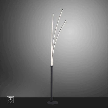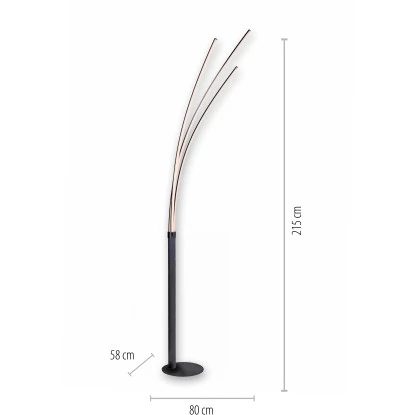 Die moderne, schwarze LED Stehleuchte Maja überzeugt mit schlichter Eleganz. Die LED Stehlampe wird mit drei LED Leuchtmitteln geliefert. Die drei Leuchtmittel strahlen mit einer Farbtemperatur von 3000 Kelvin angenehm warmweiß. Über den vorhandenen Kippschalter kann man die Leuchte im Handumdrehen an- und ausschalten. Als wohnliches Zusatzlicht findet die Leuchte schnell Ihren geeigneten Platz. Die Leuchte punktet mit einer langen Lebensdauer, geringer Wärmeentwicklung und einem geringen Energieverbrauch dank der verwendeten LED-Technologie. Die Länge der Leuchte beträgt 80cm, die Breite 58cm und die Höhe 215cm.
