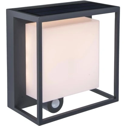 Die moderne Solar-Außenwandleuchte Curtis überzeugt mit ihrer hochwertigen Verarbeitung und hoher Funktionalität. Sie hat einen opalfarbenem Diffusor und einen quadratischen, anthrazitfarbenen Aluminiumrahmen. Das Solarmodul ist vollständig integriert und erst auf den zweiten Blick sichtbar. In Kombination mit dem Bewegungsmelder ist die Solarlampe Curtis die ideale Leuchte für jeden Außenbereich.