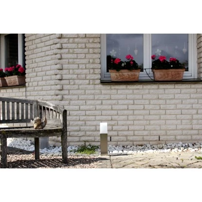 Schlichtes und modernes Design prägen die Wegeleuchte Flat, welche sich als dezente Lichtsäule ihrer Umgebung anpasst. Der Lichtaustritt ist stimmungsvoll und das warmweiße Licht (3.000 K) ist angenehm. Mit nur 6 Watt erzeugt sie 500 Lumen. Durch die massive Verarbeitung hat die Leuchte IP44 und ist damit gegen Wettereinwirkungen geschützt. Die energiesparenden LED-Leuchtmittel sind fest verbaut und können nicht ausgetauscht werden.