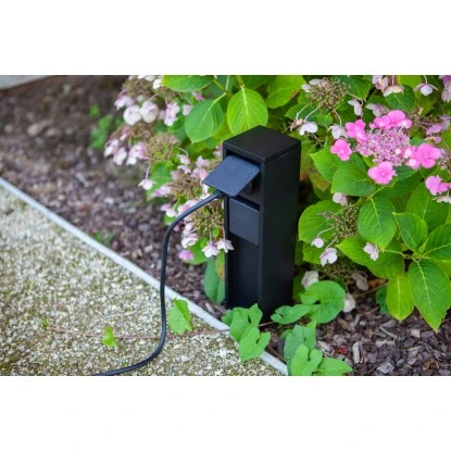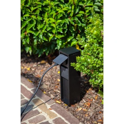 Der Lutec Stromverteiler Mains überzeugt mit einer hochwertigen Verarbeitung und einem schlichten, modernen Design in mattem Schwarz. Dank der Optik passt die aufrechte Steckdosenleiste in jeden Garten.