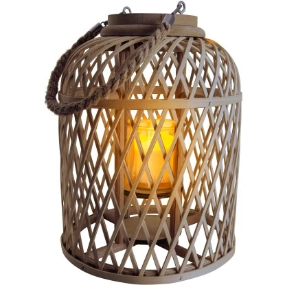 Näve Dekoleuchte Korb Braun Mit Solar-LED-Kerze 29 Cm