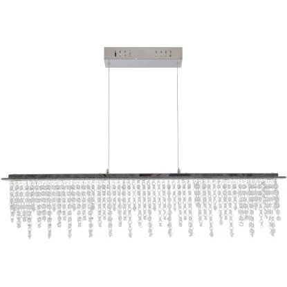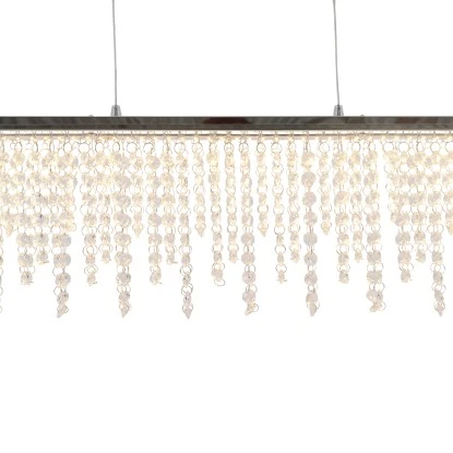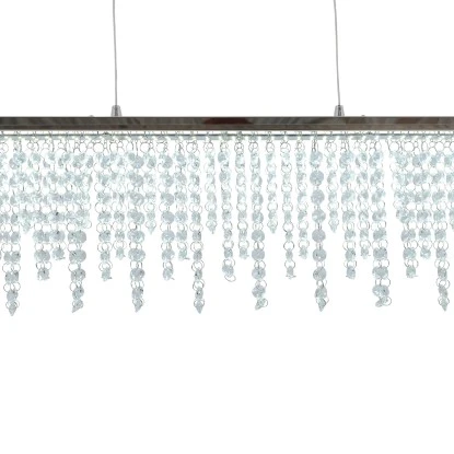Diese Leuchten zeichnen sich durch ihr stilvolles Design, sowie durch ihre hochwertige Verarbeitung aus. Bei der Anfertigung dieser Produkte wurden verchromte Elemente, Glas und weiße Kristalle verwendet. Die von den chromfarbenen Deckenplatten herabhängenden Kristalle sind ein echter Hingucker.