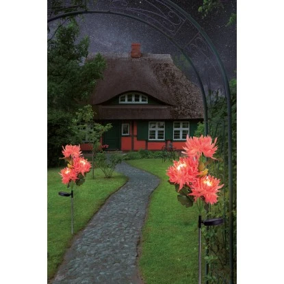 Der LED-Solar-Erdspieß Blume von Näve garantiert Ihnen bunte Blumen die ganze Zeit. Die rosa Blumen verschönern jeden Garten ohne zu verwelken. Dank des Solarbetriebs verbraucht die Leuchte keinen Strom und man muss sich keine Gedanken über das Aufladen eines Akkus oder das Wechseln der Batterien machen.