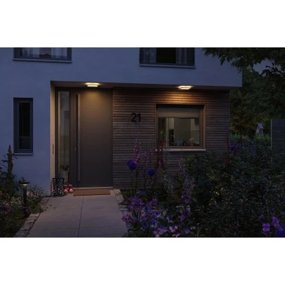 Sowohl an der Wand als auch an der Decke verbreitet die eckige Paulmann LED-Outdoor-Leuchte Lamina 230 V mit PIR-Sensor, weißen Rahmen und der weißen Innenfläche flächiges warmweißes Licht. Das zusätzliche Hintergrundlicht schafft eine angenehme Atmosphäre und setzt die Wand/Decke besonders in Szene. Sie trägt zur besseren Orientierung in der Dunkelheit bei und sorgt für mehr Sicherheit. In der Grundeinstellung leuchtet das Panel mit 20 % Helligkeit und 2.200 Kelvin. Sobald sich jemand annähert, wird das Außenlicht durch den verbauten Bewegungsmelder auf 100 % Helligkeit und 3.000 Kelvin geschaltet. Nach etwa 30 Sekunden wird wieder auf die gespeicherte Lichtfarbe und Helligkeit zurückgeschaltet. Wenn gewünscht kann über den Wandschalter auch das Orientierungslicht deaktiviert werden, dann wird die Leuchte nur über den Bewegungsmelder geschaltet. Zusätzlich kann auch der Bewegungsmelder deaktiviert werden, dann schaltet die Leuchte nur über den Dämmerungssensor an und aus. 2.200 Kelvin liegen außerhalb des sichtbaren Bereiches für die meisten Insekten, somit werden diese nicht von der zusätzlichen Lichtquelle angezogen und die Leuchte ist damit besonders insektenfreundlich.