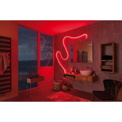Dezent, homogen & lichtstark! Der MaxLED Flow RGB spendet mit einer Leistung von 27 Watt flächiges Licht ohne sichtbare LED-Punkte. Er ist in einem flexiblen Profil mit großem, effektvollen Ausstrahlwinkel vergossen und kann sowohl in geschwungenen Linien als auch in geraden Strecken verlegt werden. Zur Befestigung sind transparente, kaum sichtbare Halteclips, Schrauben und Dübel im Set enthalten. Dank IP67 Schutz eignet sich der filigrane Stripe auch für Feuchträume und bringt Licht in Ihr Wellnessbad.