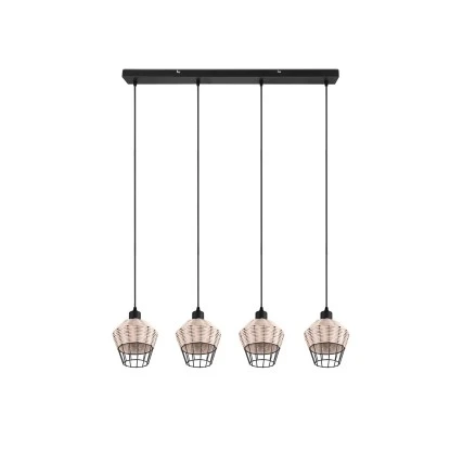 Die Reality Pendelleuchte 4-flammig Naturbelassen 95 cm x 17,5 cm ist eine Pendelleuchte im trendigen Rattangeflecht-Design, kombiniert mit Schwarz mattem Metall. Sie bietet nicht nur eine ansprechende Optik, sondern auch eine warme und gemütliche Atmosphäre in Ihrem Zuhause.
