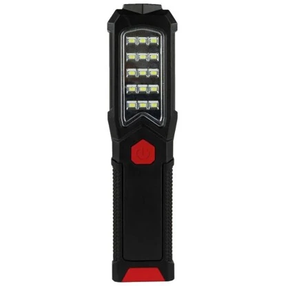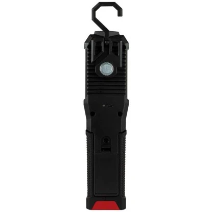 Die REV Ritter LED-Akku-Handlampe Torch mit Taschenlampenfunktion überzeugt durch Ihre kompakte Bauform. Sie lässt sich leicht transportieren und sorgt überall dort für Licht, wo keine Steckdose verfügbar ist. Bis zu 7,5 Stunden Licht ohne Strom, durch den integrierten Lithiumionenakku. Die Leuchte ist somit universell einsetzbar und das ideale Gerät für Arbeit, Hobby und Camping. Der neigbare Standfuß kann zusätzlich auf metallenen Gegenständen mit dem integrierten Magnet befestigt werden. Zusätzlich bietet die Leuchte einen Haken zum Aufhängen um Arbeiten in der Hobby- Werkstatt oder am Auto zu erleichtern. Im Lieferumfang befindet sich ein USB-Ladekabel zum Aufladen. Mit einer Leuchtkraft von 400 Lumen spendet die Arbeitsleuchte helles Licht. Es können drei verschiedene Leuchtmodi durch drücken ausgewählt werden. (1x Volle Leistung, 2x niedrigste Leistung, 3x Taschenlampe). Die maximale Leuchtdauer ist abhängig vom ausgewählten Modus.