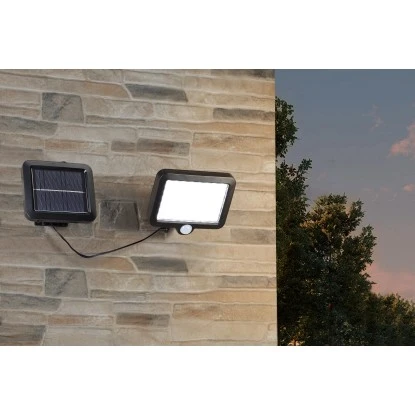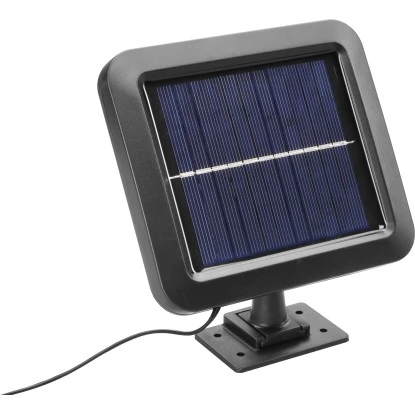 Die LED-Solarleuchte mit integriertem Passiv-Infrarot-Sensor (PIR) kann durch ihr langes Verbindungskabel und ihre handliche Größe überall flexibel eingesetzt werden. Durch Sonneneinstrahlung auf das Solarpanel läd sich der fest verbaute Lithium-Ionen Akku bis zu einer max. Brenndauer von 1 h auf. Der verbaute PIR Sensor hat eine Reichweite von 5-7 Meter bei einem Erfassungswinkel von 120° und sorgt beim Auslösen für ein effizientes Licht. Das verbaute LED-Leuchtmittel erzeugt eine Leuchtkraft von 300 lm / 3 W mit einem strahlenden Tageslichtweiß (10.000 Kelvin). Die Solar-Leuchte ist nach Schutzart IP44 Spritzwassergeschützt.