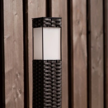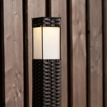 Die Solar-Wegeleuchte Muscat 5 lm 2700 K IP44 Sensor Schwarz strahlt eine warmweiße Farbe aus, die nicht flackert, und verfügt über einen Timer, der die Lampe automatisch zur eingestellten Zeit einschaltet und nach fünf Stunden automatisch wieder ausschaltet.